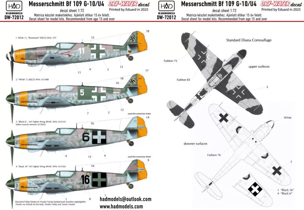 HAD models - Messerschmitt Bf 109 G-10 decal sheet 1:72