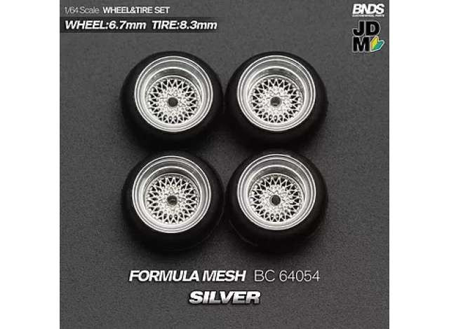 Mothobby Bnds - FORMULA MESH (wheel: 6.7 mm tyre: 8.3mm) SILVERWheel & Tyre Set4 pcs
