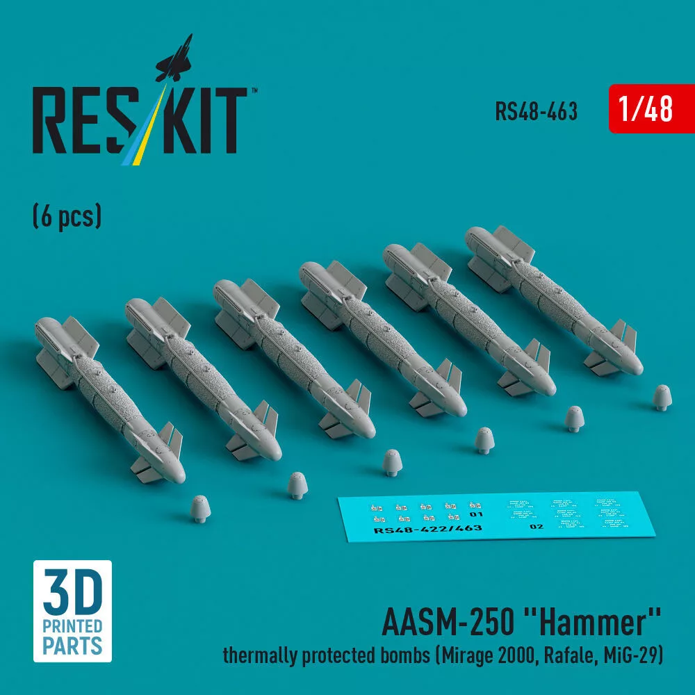 Reskit - AASM-250 Hammer thermally protected bombs (6 pcs) (Mirage 2000, Rafale, MiG-29) (3D Printed)