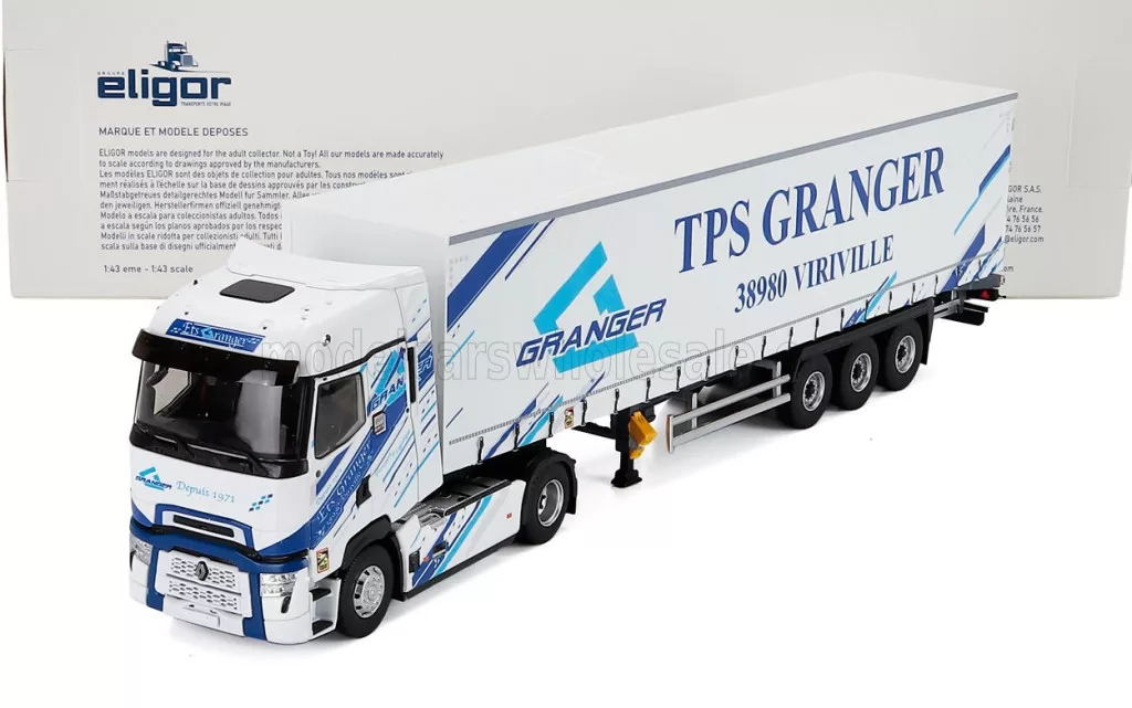 Eligor - RENAULT T-LINE HIGH TRUCK TELONATO GRANGER TRANSPORTS 2023 WHITE BLUE